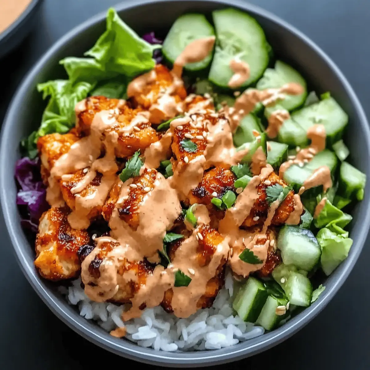 • Customize the Sauce: Mix your spicy sauce to taste—add more sriracha for extra heat or decrease it for a milder flavor in your Bang Bang Chicken Bowl.