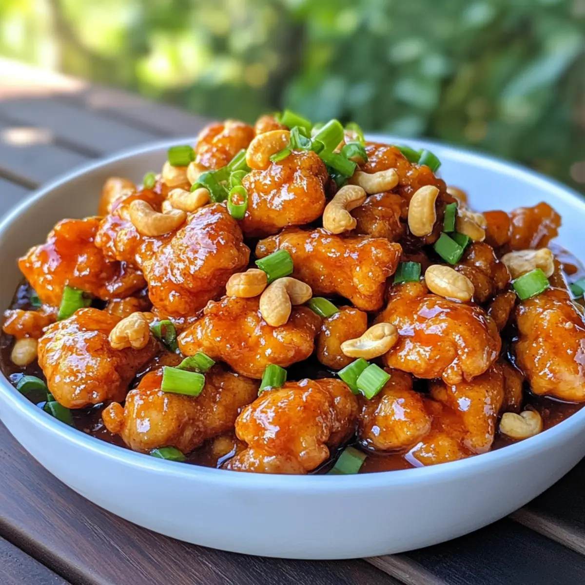 Remove the pan from heat and fold in the sliced green onions for a fresh, crisp finish. Their vibrant green color adds a lovely touch to your Cashew Chicken. Serve warm over steamed jasmine rice or noodles, and get ready to enjoy this delightful, homemade meal that’s sure to satisfy!
