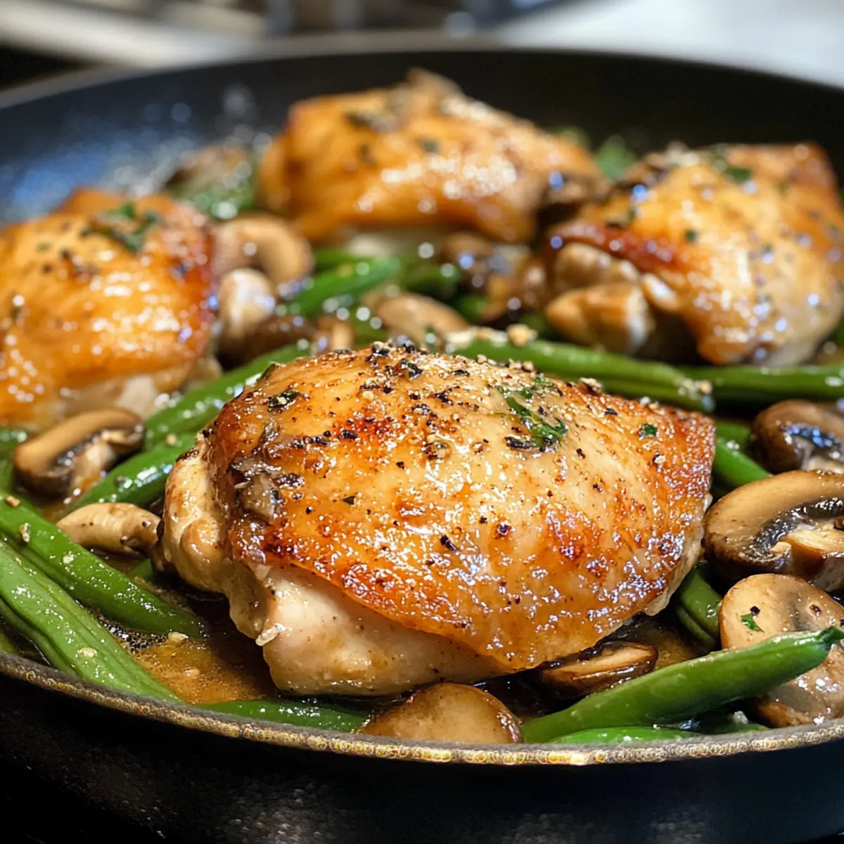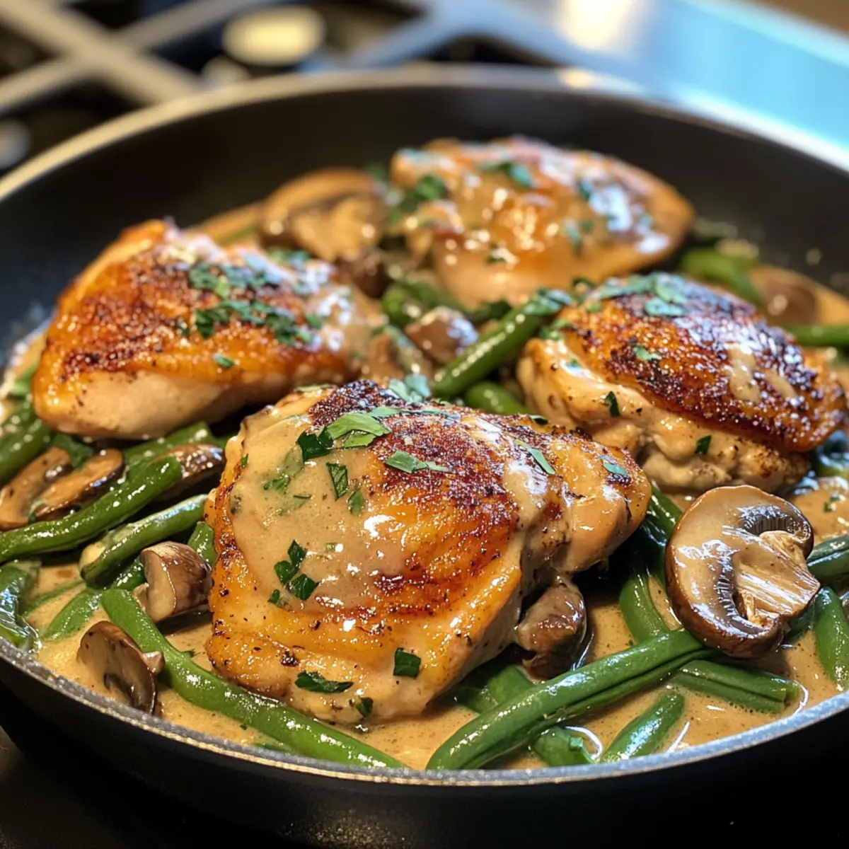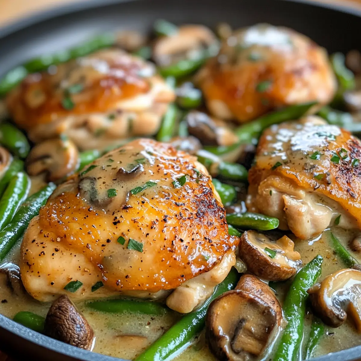 One-Pan Chicken and Green Beans in Creamy Mushroom Sauce