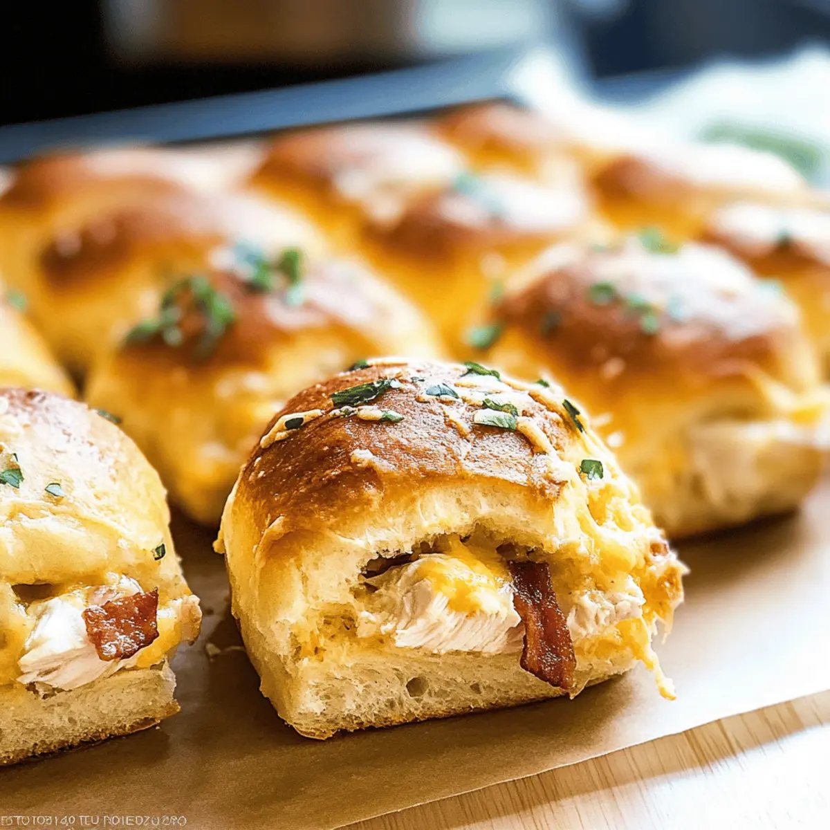 - Brush half of the melted butter mixture on the roll bottoms, then layer half of the cheese, followed by chicken, bacon, and Ranch dressing. Top with the remaining cheese.