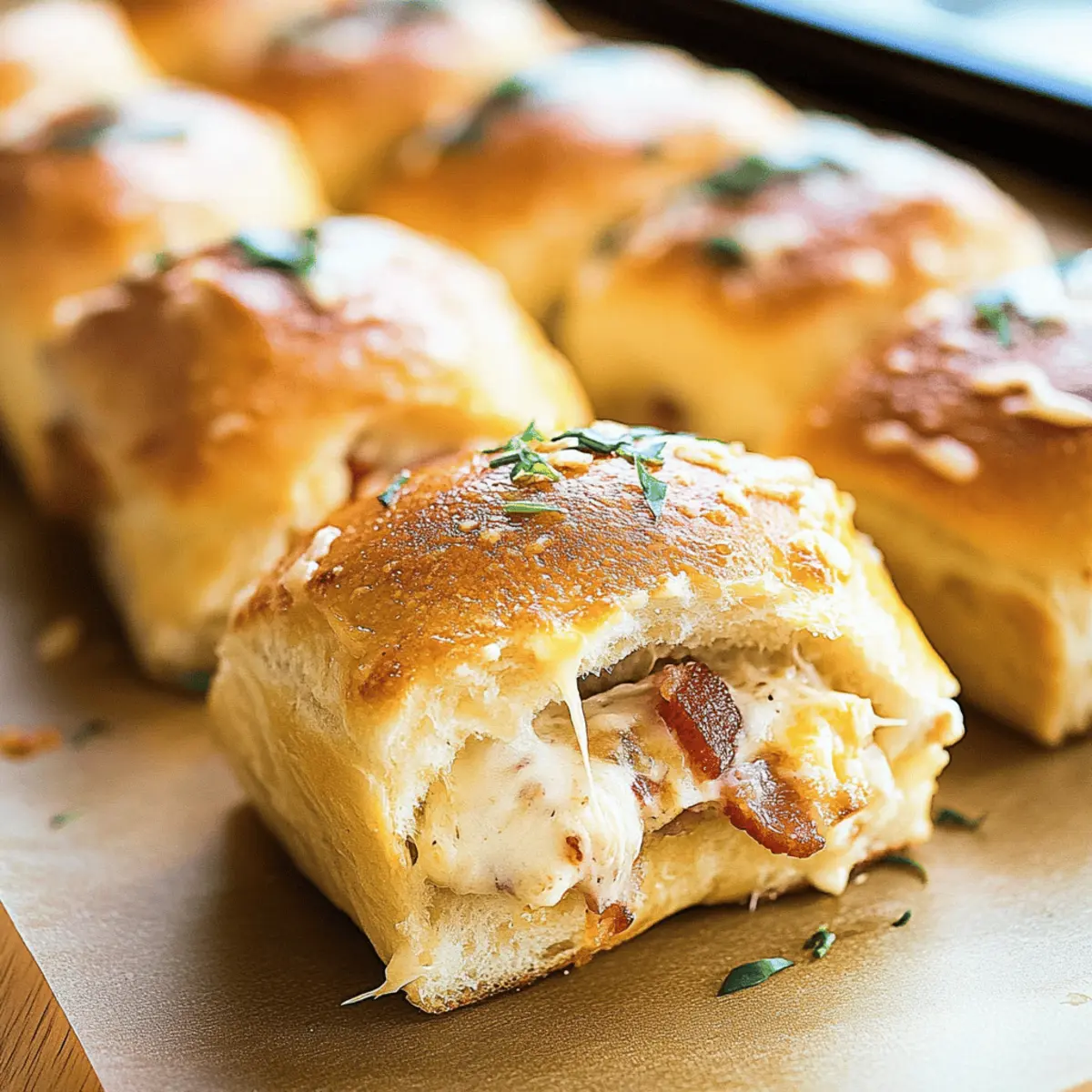 Place the top halves of the rolls back onto the layered fillings. Brush the remaining seasoned butter mixture over the top of these rolls for a rich, golden finish. Sprinkle the rolls with freshly grated Parmesan cheese, adding another layer of flavor that complements the Chicken Bacon Ranch filling beautifully.