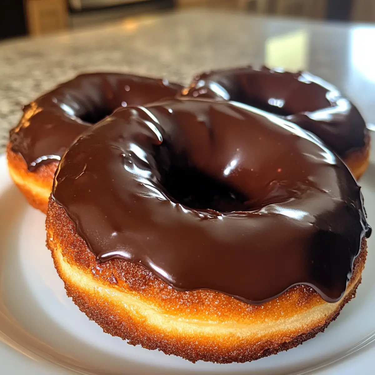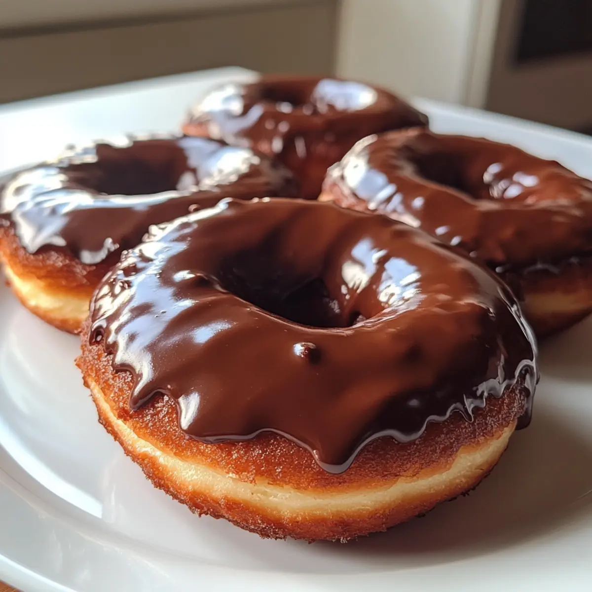 While the donuts are still warm, dip them directly into the glaze, swirling gently to cover the tops. Allow the excess glaze to drip off, then place them on a cooling rack or a plate to let the glaze set for a few minutes. Your Chocolate Old-Fashioned Donuts are now beautifully glazed and ready to enjoy!