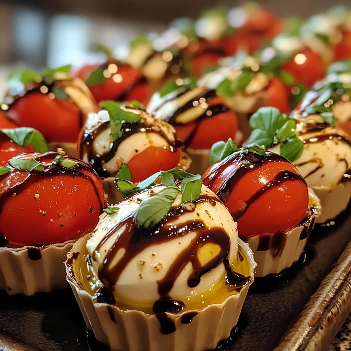 Vibrant, Fresh Ingredients: Each cup bursts with color from sun-kissed cherry tomatoes, creamy mozzarella, and aromatic basil—creating an eye-catching appetizer that draws in guests.