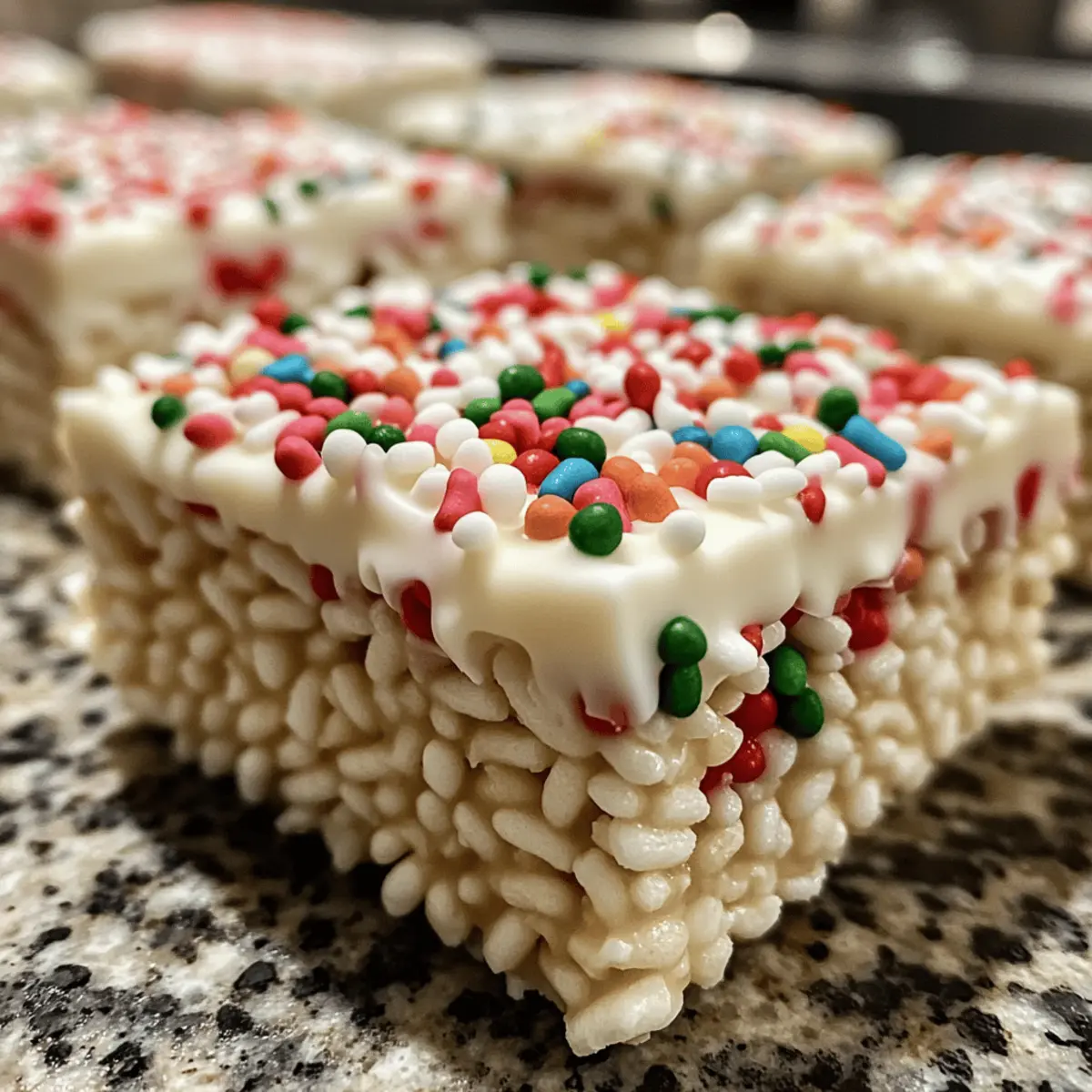 As I rummaged through the pantry on a chilly afternoon, I stumbled upon a box of puffed rice cereal and envisioned a delightful holiday treat that would warm the hearts of my loved ones. These Easy No-Bake White Chocolate Christmas Rice Crispy Treats are a festive dream come true, combining the nostalgic crunch of cereal with the silky sweetness of white chocolate. The best part? They come together in a matter of minutes, making them the perfect last-minute dessert for any holiday gathering. Not only are they incredibly simple to whip up, but their vibrant sprinkles create a show-stopping presentation that will have everyone reaching for seconds. Ready to elevate your holiday festivities with these delightful treats? Let’s dive into the recipe!