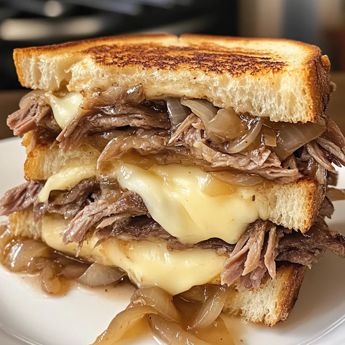 Your path to a cozy, mouthwatering meal starts here! Enjoy this delicious French Dip Grilled Cheese with all its delightful layers.