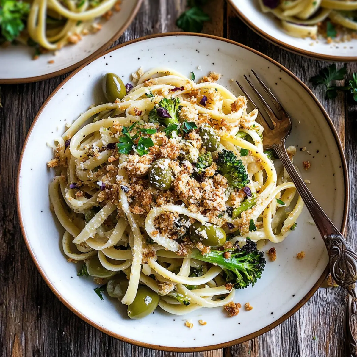 To serve your Green Olive Linguine, plate the pasta and top it generously with the crispy toasted breadcrumbs and a sprinkle of additional parmesan cheese. For an extra kick, add a drizzle of freshly squeezed lemon juice for brightness. Admire your creation, and get ready for the compliments at the dinner table!