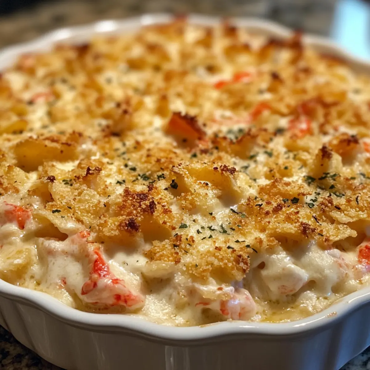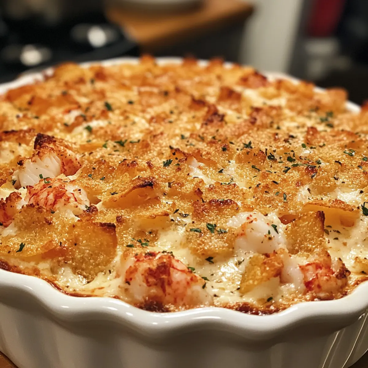 5. Spread the lobster mixture in a greased baking dish and top with crushed potato chips.