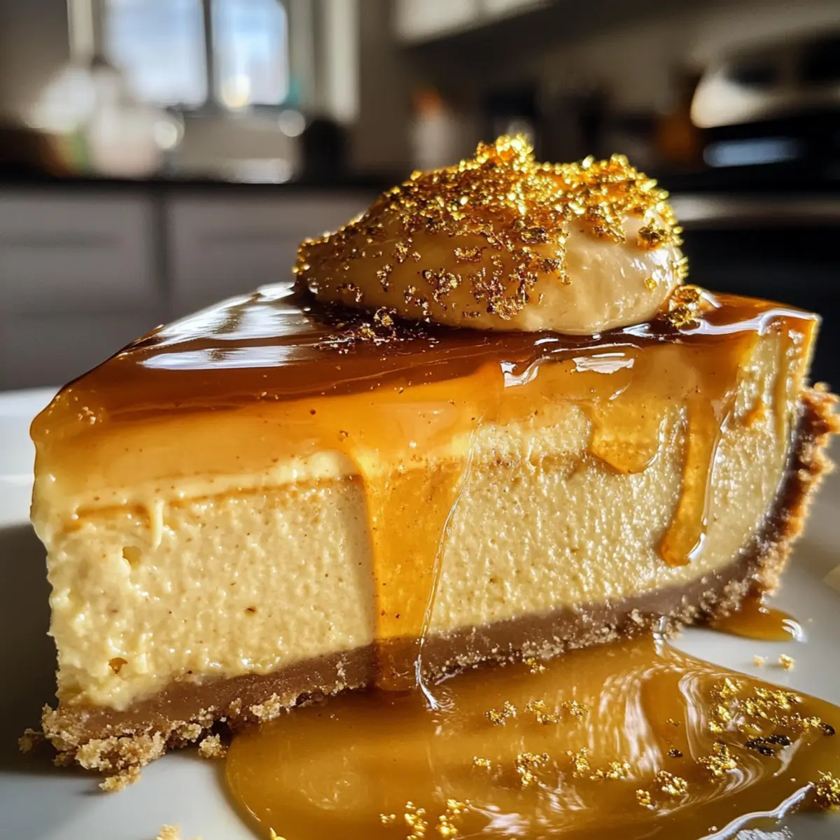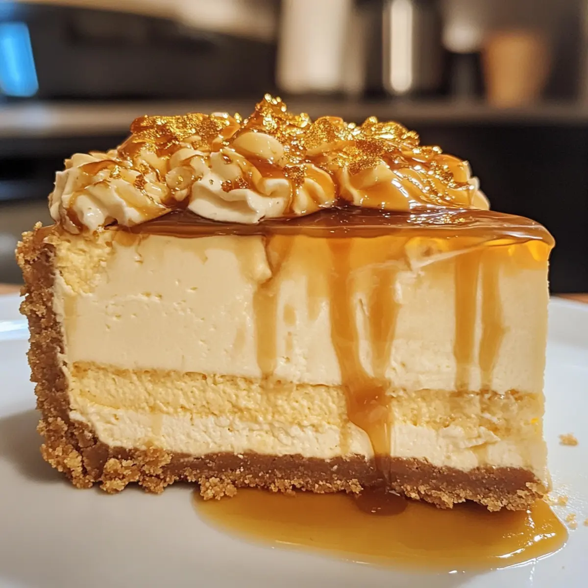Once your cheesecake is completely chilled, drizzle the warm honey caramel over the top. To enhance its enchanting appearance, sprinkle crushed graham crackers and edible gold glitter or sprinkles on top for a whimsical finish that celebrates the magic of this Hufflepuff Butterbeer Cheesecake.