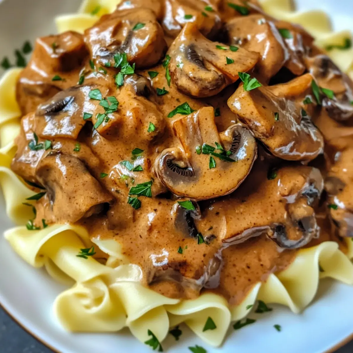 Creamy Goodness: A luscious, rich sauce envelops tender mushrooms, creating a comforting dish that warms the heart.