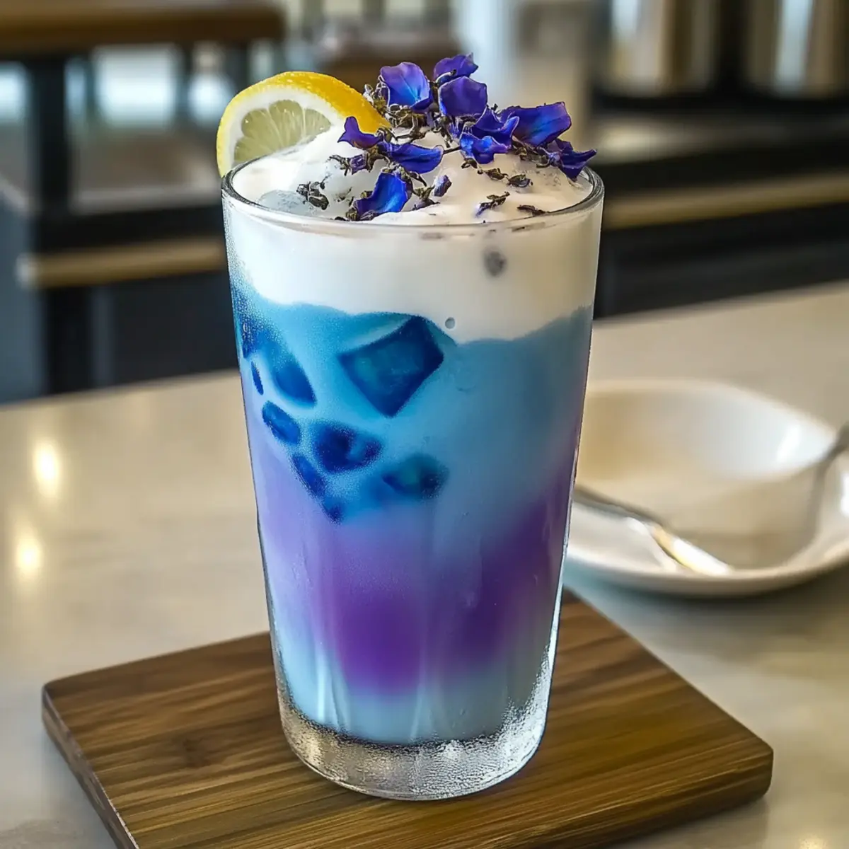 - Butterfly Pea Flower Tea – This is the star ingredient, giving the latte its vibrant blue color and mild earthy flavor.