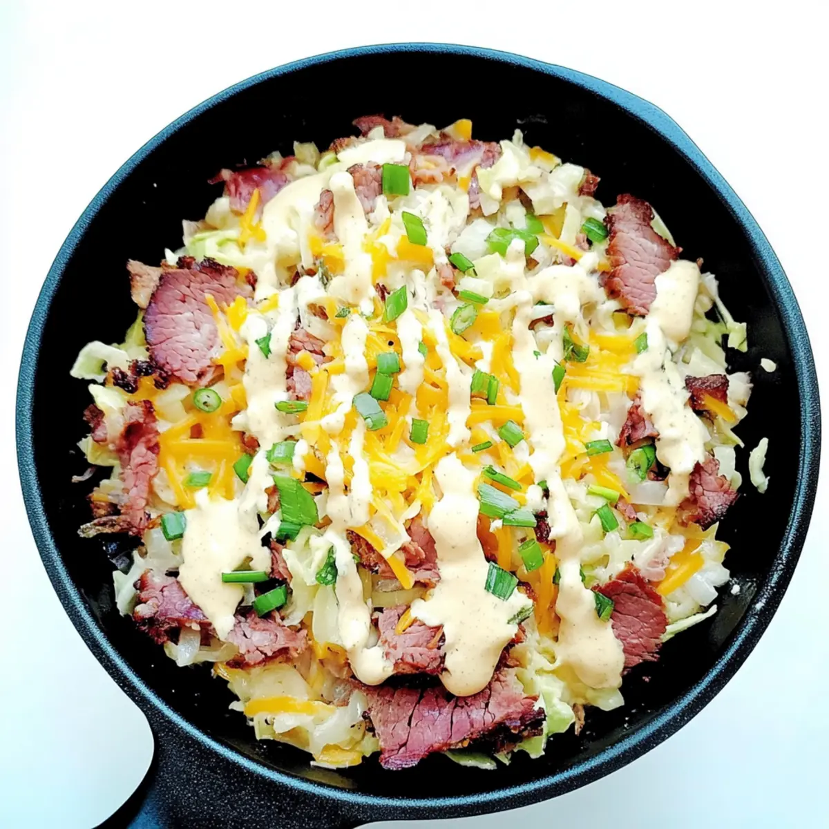 Once the cheese is melted and bubbly, remove the skillet from the oven. Spoon generous portions into bowls and drizzle with your Russian dressing. For a fresh touch, garnish with chopped scallions or chives. Enjoy immediately while it’s hot and savory, celebrating your homemade, low-carb delight!