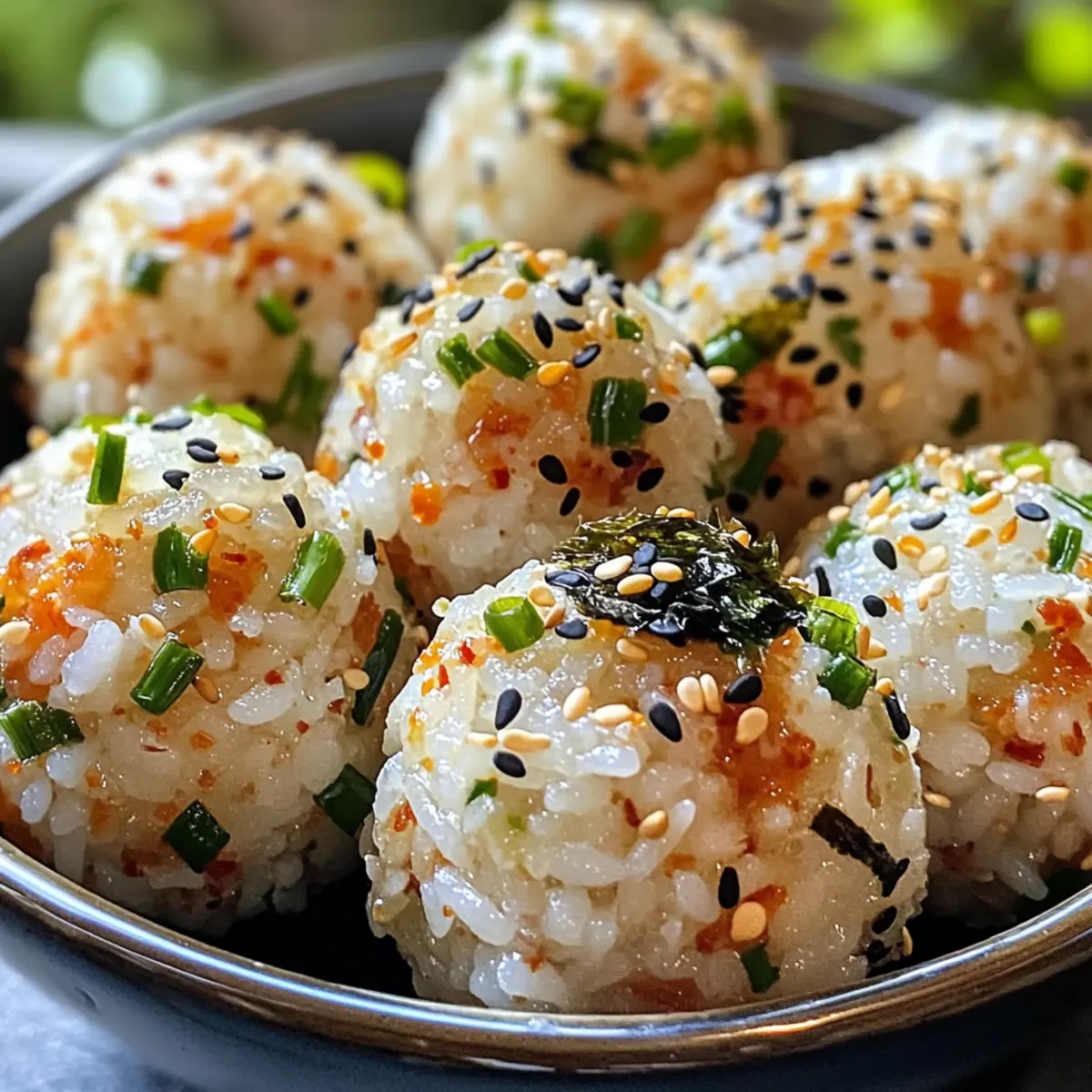 - Sprinkle additional sesame seeds and roasted seaweed flakes on top of the rice balls for garnish.