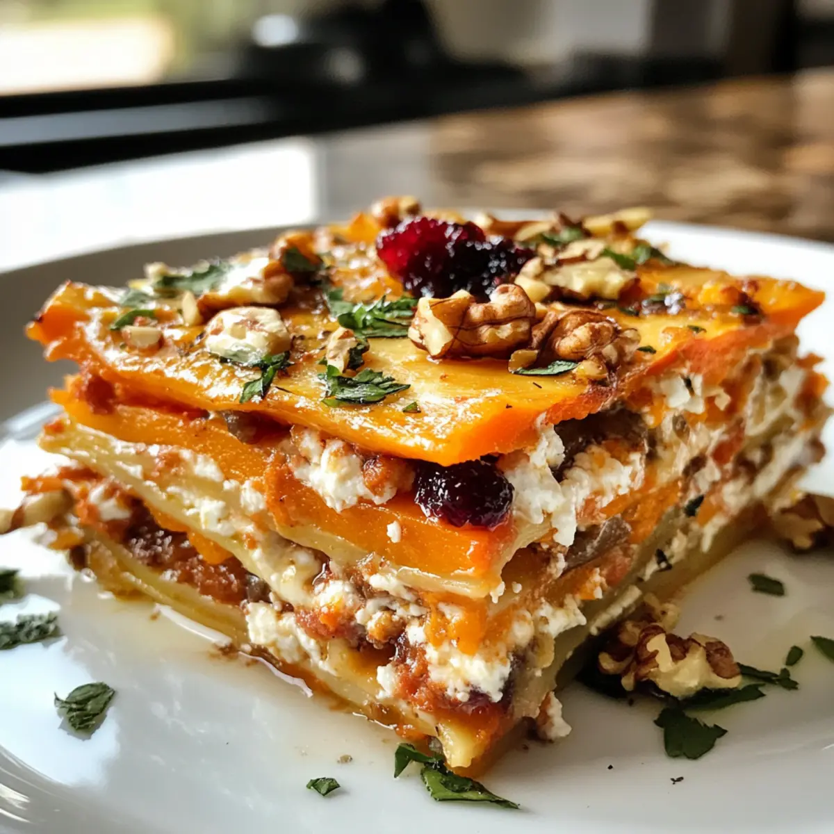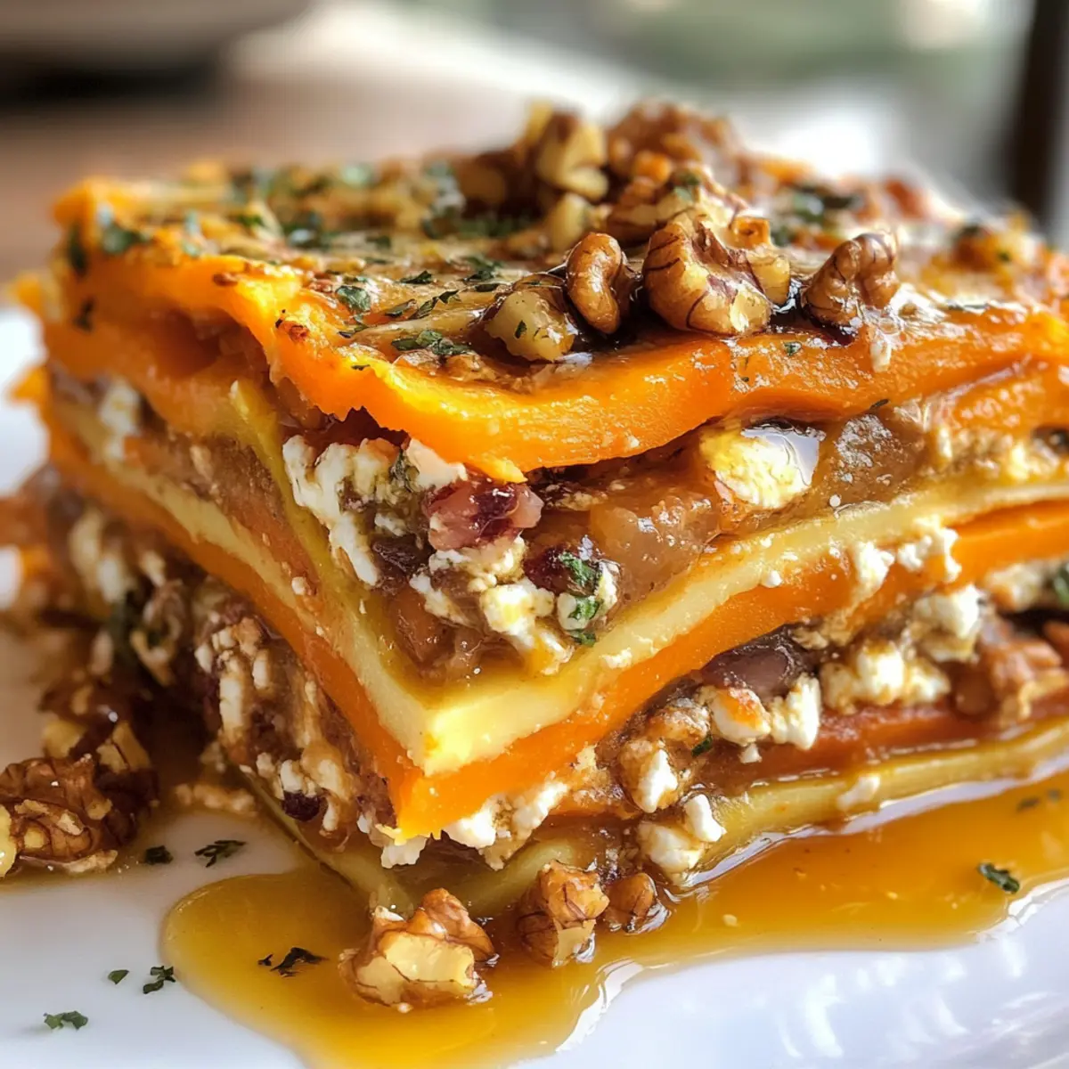 As I stood in my kitchen, the vibrant colors of fresh vegetables beckoned me like a stunning autumn landscape. This Layered Root Veggie Lasagna is my answer to transforming everyday ingredients into an eye-catching delight. With sweet potatoes, butternut squash, and carrots layered artfully along with creamy feta, crunchy walnuts, and a tangy cranberry-honey glaze, this dish promises to be both visually stunning and deliciously satisfying. Not only is it a fantastic way to embrace the flavors of the season, but it’s also a wonderful crowd-pleaser that’s surprisingly simple to prepare. Whether you’re feeding a family or hosting a gathering, this veggie lasagna will elevate your meal while providing the comfort we all crave. Ready to discover how to create this enchanting dish that will have everyone asking for seconds? Let’s dive in!