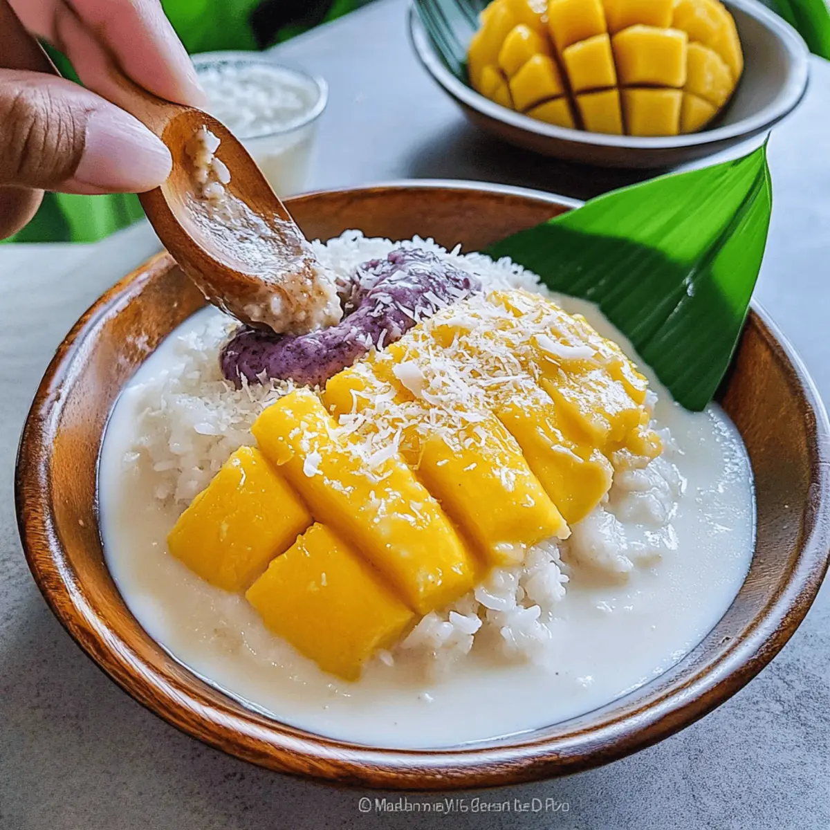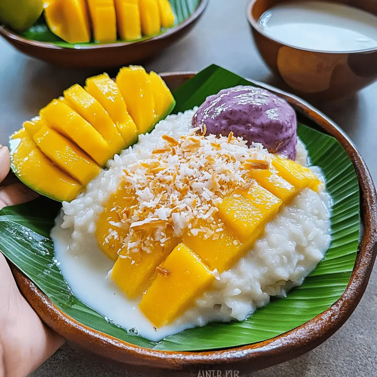 Mango Sticky Rice is a delightful dessert that combines glutinous rice, creamy coconut milk, and sweet mangoes, now with a vibrant ube twist.