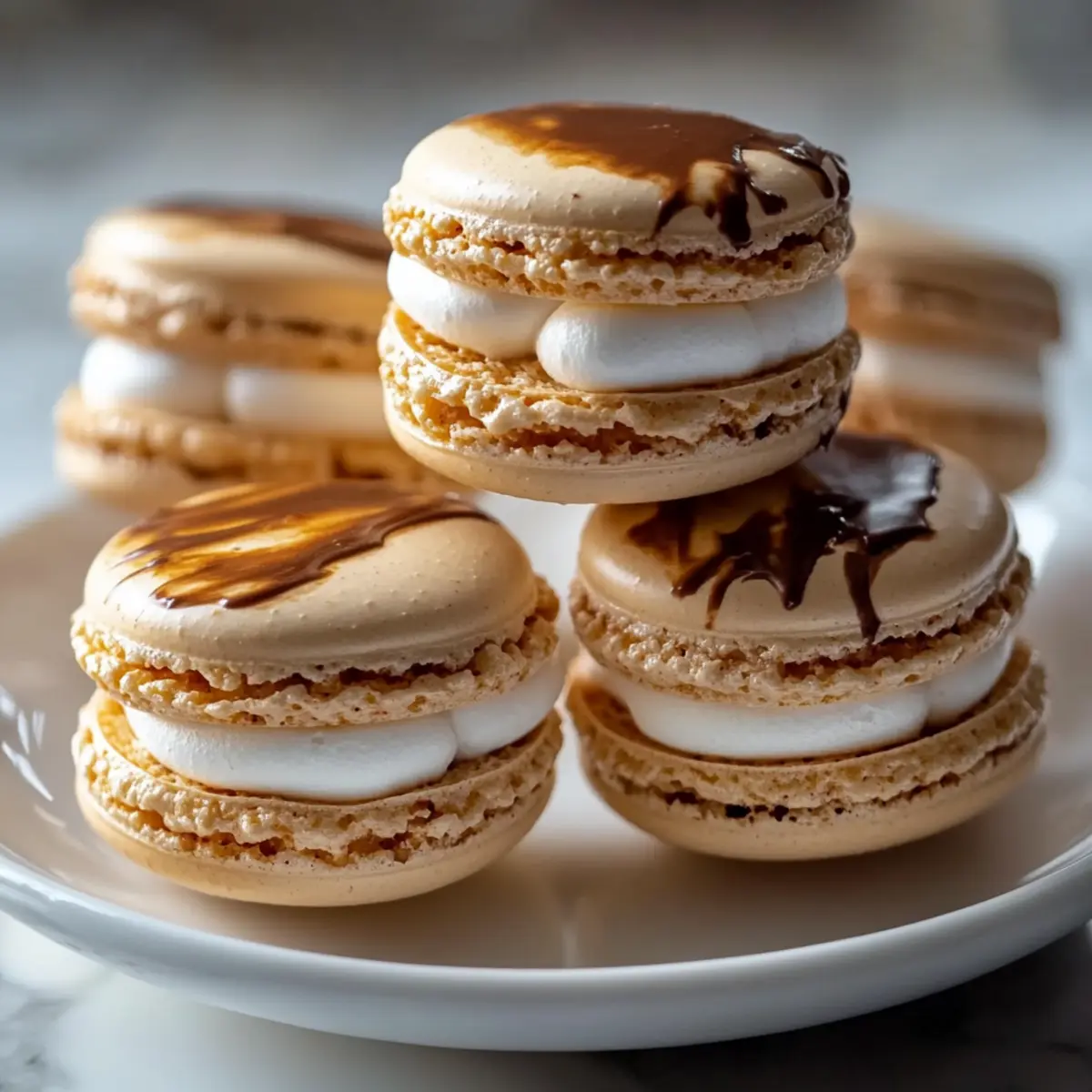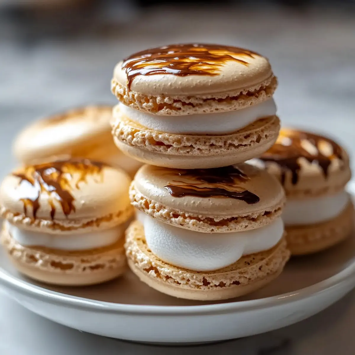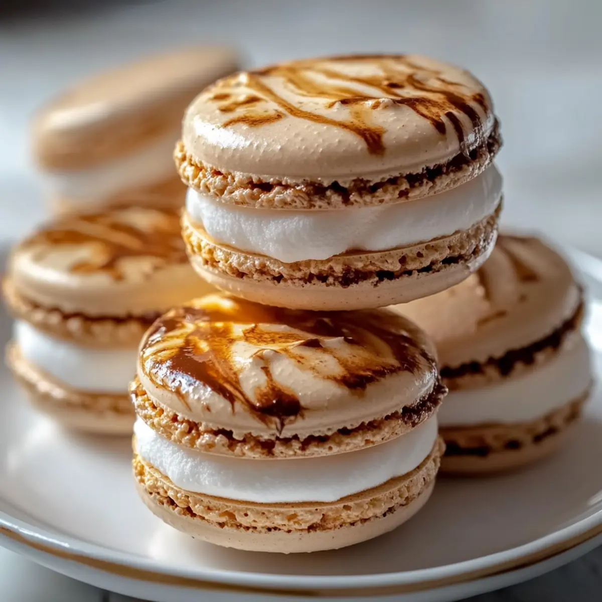 These Irresistible Marshmallow Macarons with Mexican Hot Chocolate Glaze are perfect for busy home cooks looking to save time in the kitchen. You can prepare the macaron shells up to 24 hours in advance; simply store them in an airtight container at room temperature to maintain their crisp texture. The marshmallow filling can also be made ahead and stored in the refrigerator for up to 3 days. When you’re ready to serve, simply re-whip the filling for a fluffy consistency before piping it onto the macaron shells. Additionally, you can make the Mexican hot chocolate glaze up to 48 hours ahead; just reheat it gently before drizzling over the assembled macarons, ensuring they remain just as delightful as when freshly made!