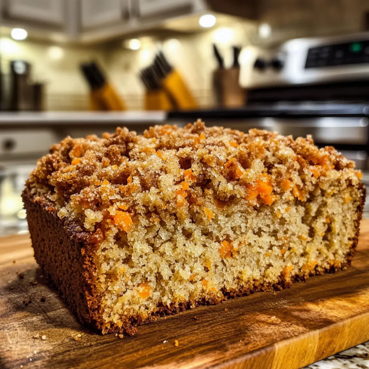 This Moist Carrot Bread features delicious grated carrots and a crunchy streusel topping, perfect for breakfast or as a sweet treat.