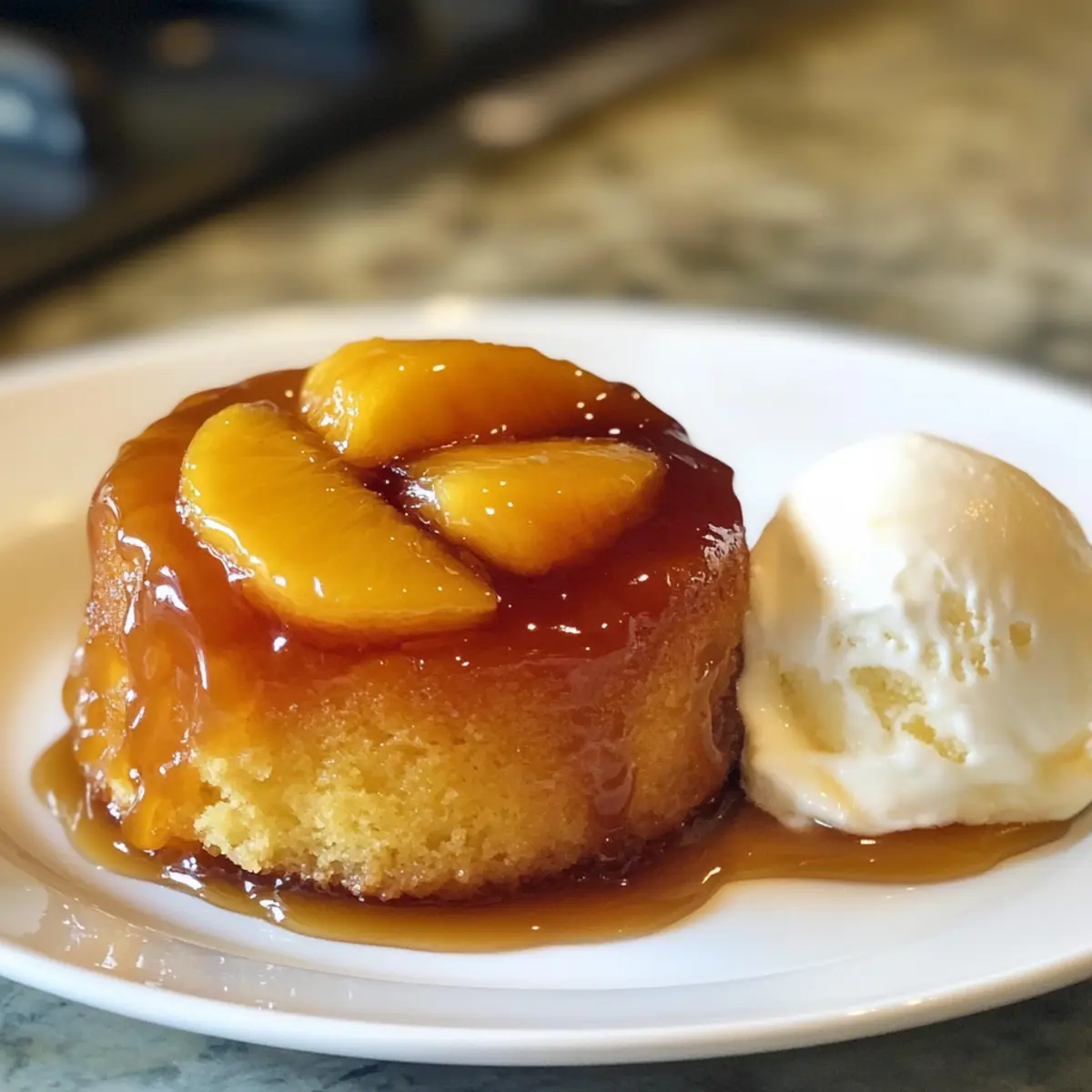 Creamy Vanilla Ice Cream: A cold scoop adds a creamy contrast, perfectly balancing the warm, fruity cake.