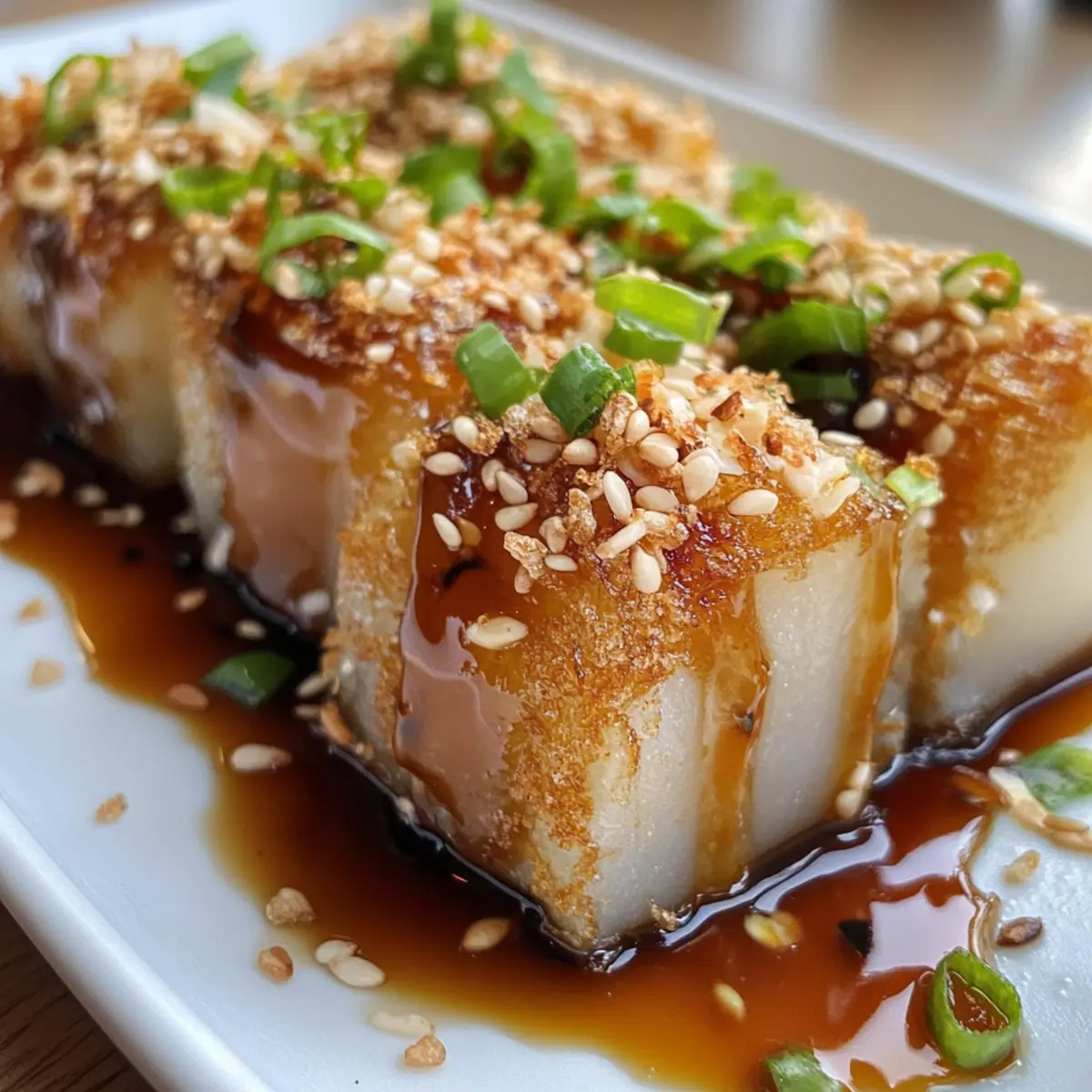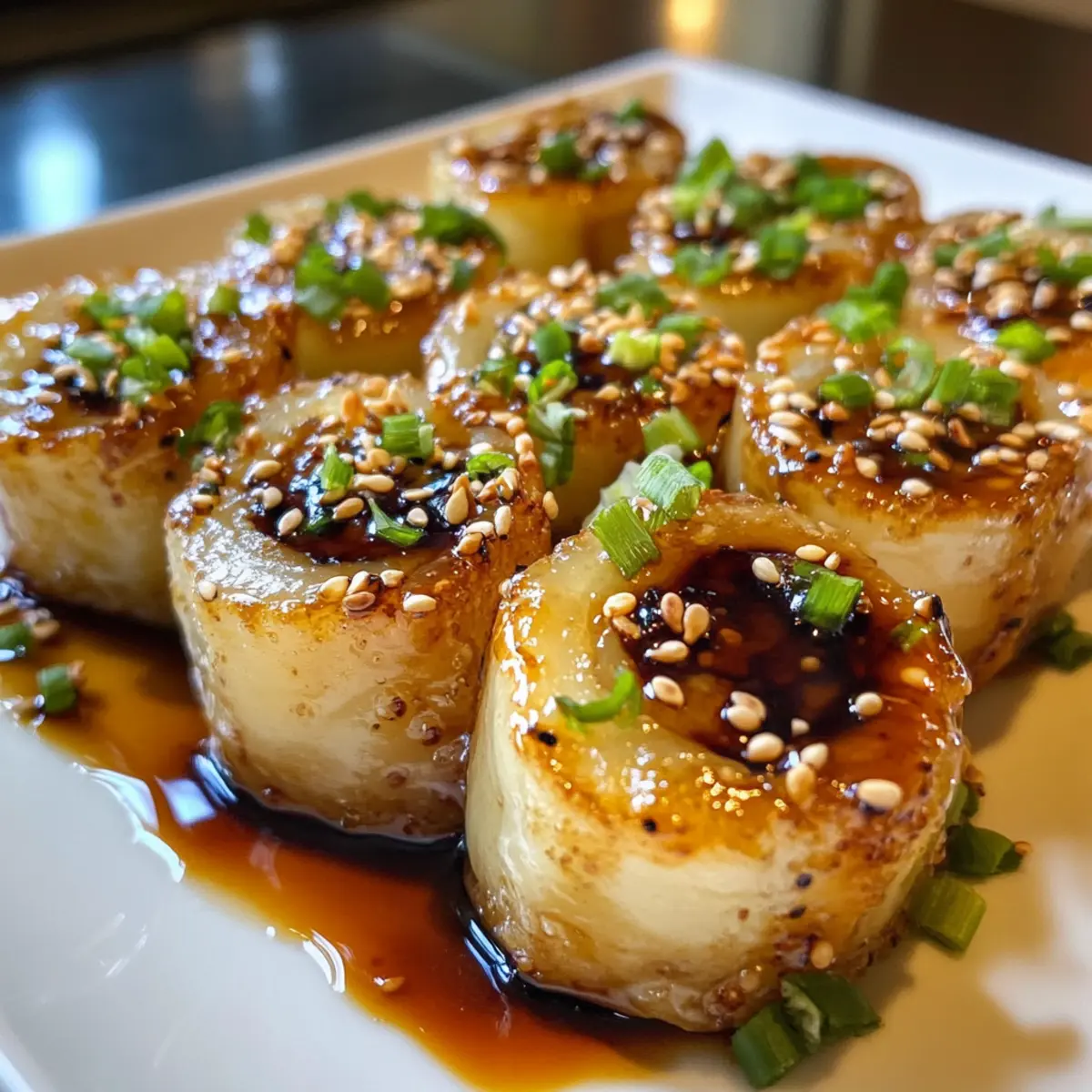 Once the Potato Mochi Rolls are perfectly golden, remove them from the skillet and drain on paper towels. Drizzle soy sauce over the rolls and sprinkle with sesame seeds and chopped green onions for a burst of flavor. Serve warm, and watch your family and friends enjoy these delightful bites, creating memorable moments at your table.