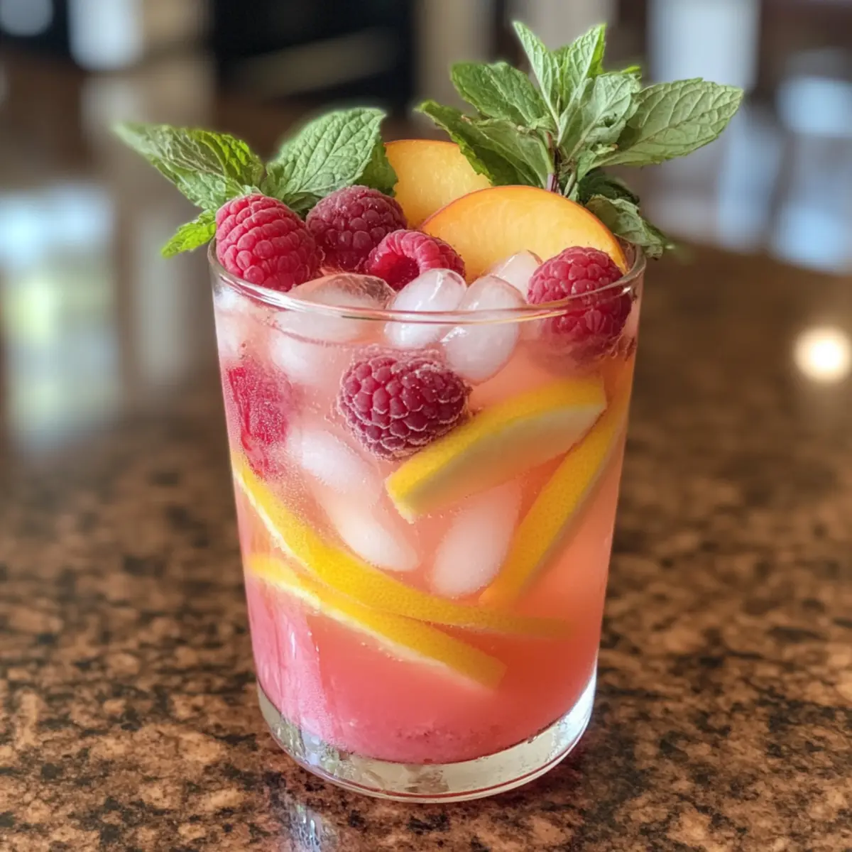 - Fresh raspberries, peach slices, and mint sprigs – Used for garnish; enhances both presentation and flavor, making each sip even more enjoyable.
