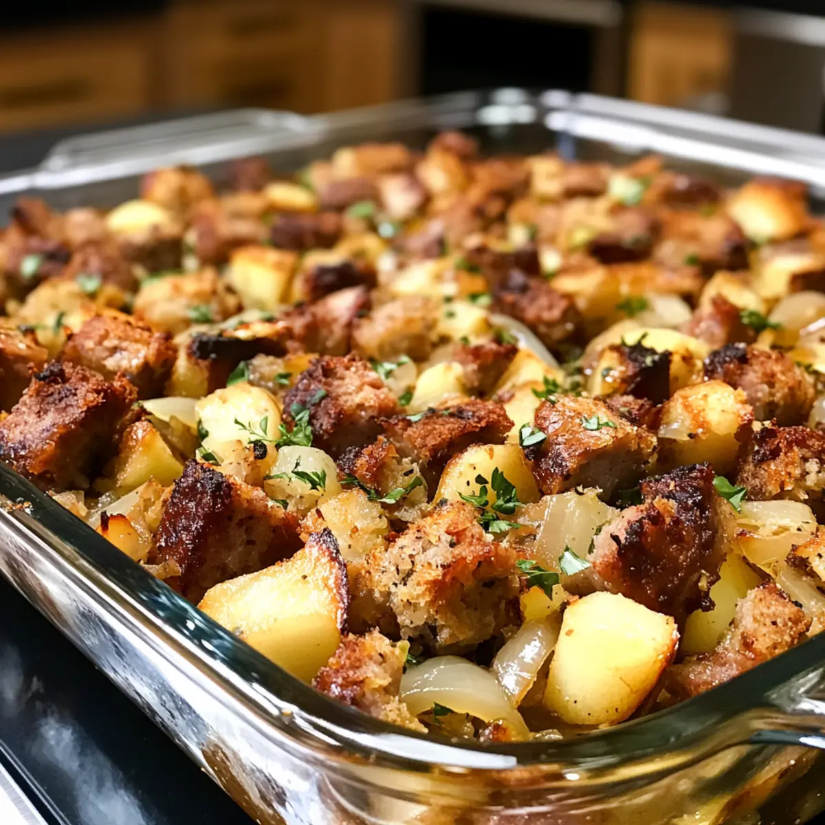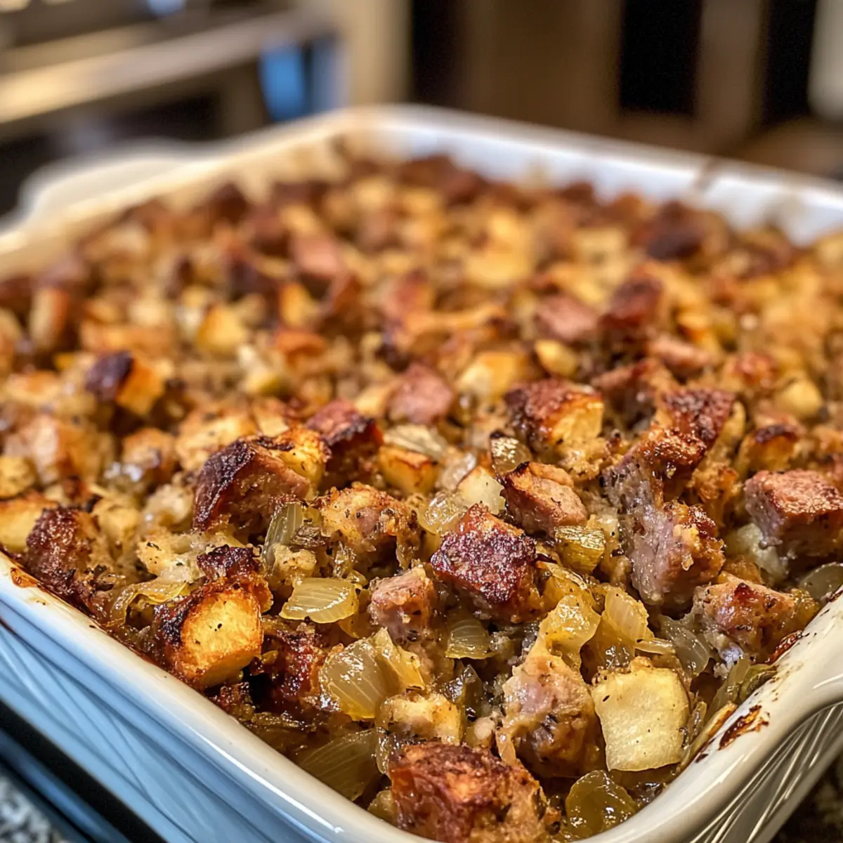Elevated flavors: The combination of spicy sausage, caramelized onions, and fragrant herbs brings a depth that transforms traditional stuffing into a flavor sensation.