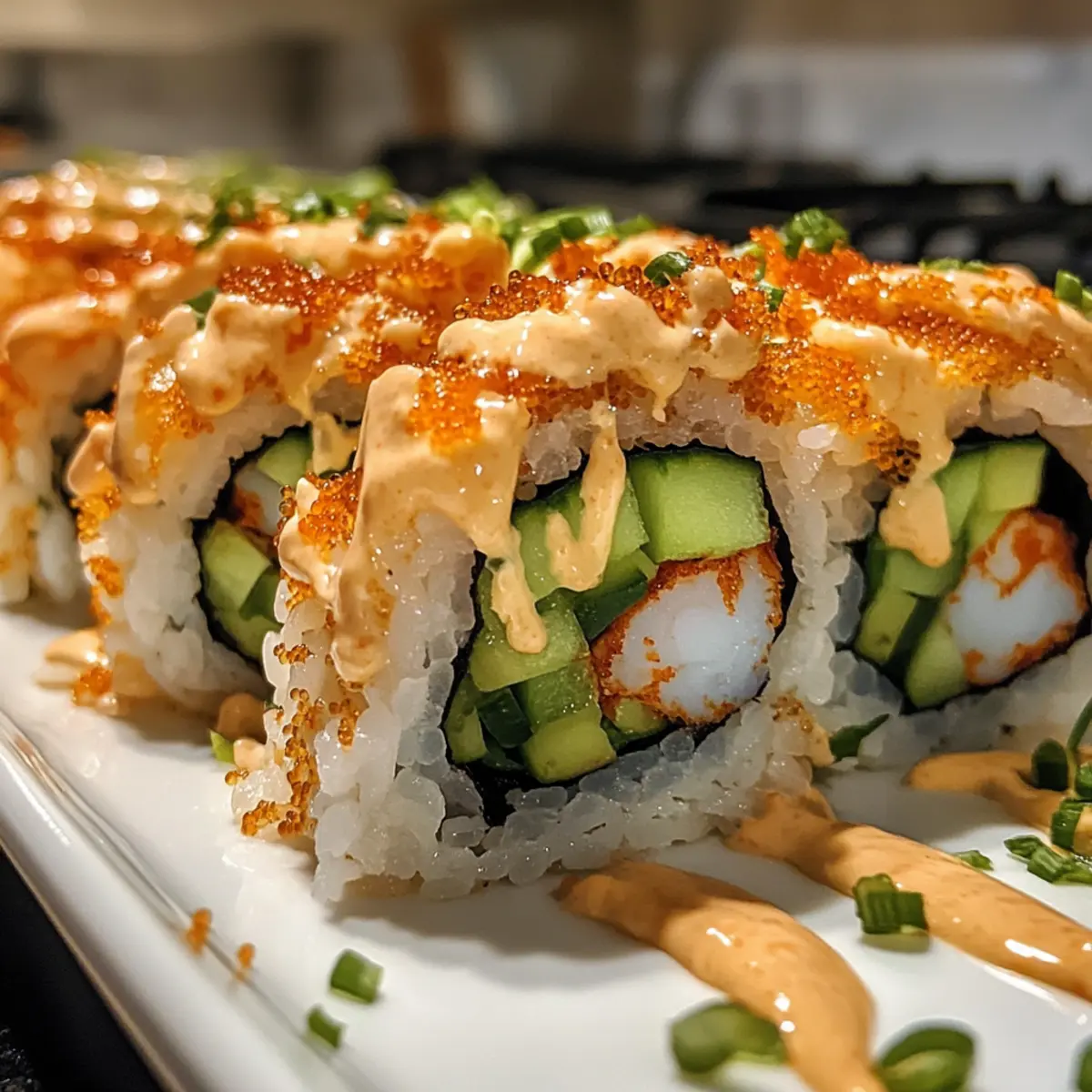 Impressive Presentation: Beautifully rolled and drizzled with spicy mayo, these sushi rolls are sure to impress guests or family during special occasions.