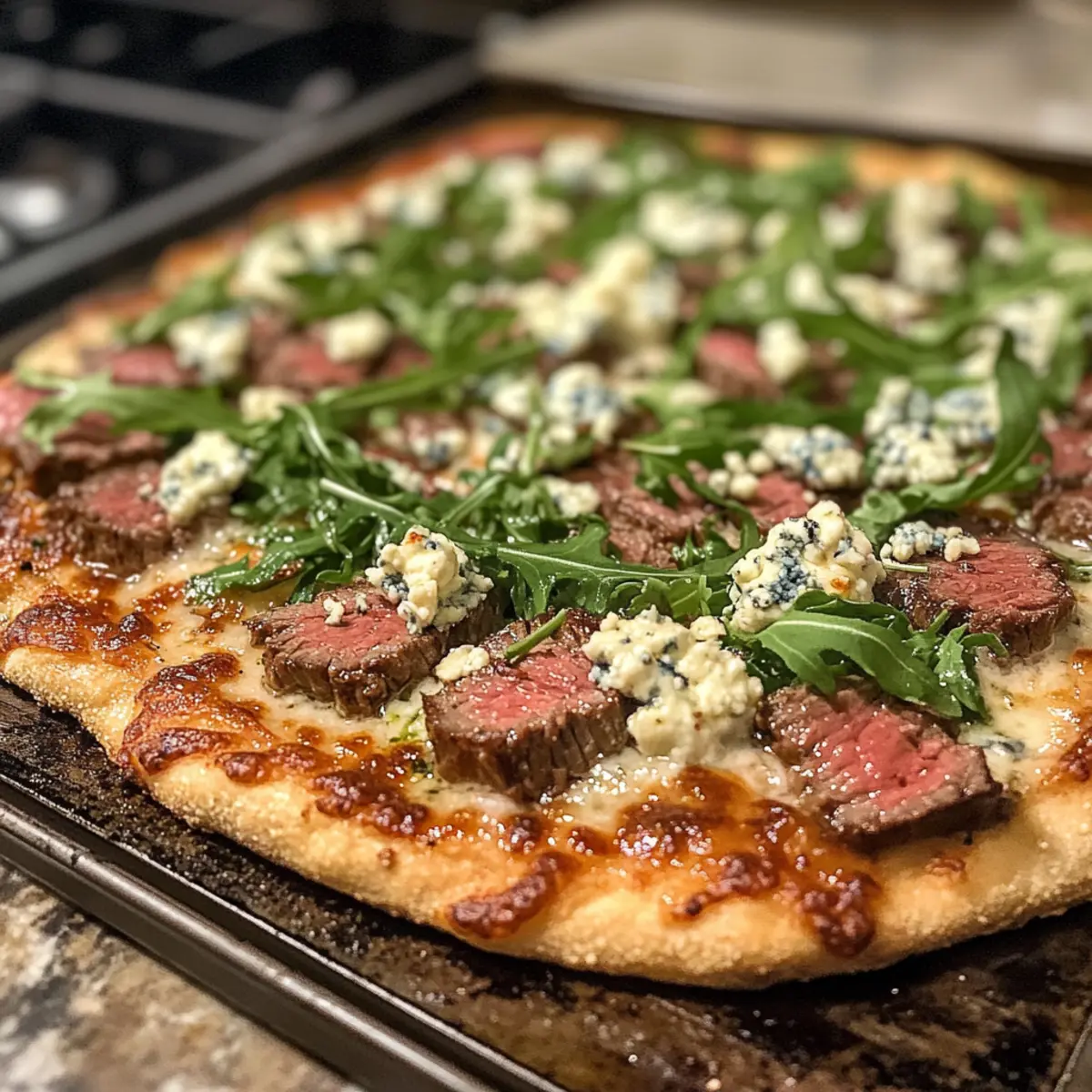 Homemade Sauce: Swap the traditional tomato sauce with a white garlic sauce for an irresistible creamy twist. This base complements the steak and blue cheese beautifully.