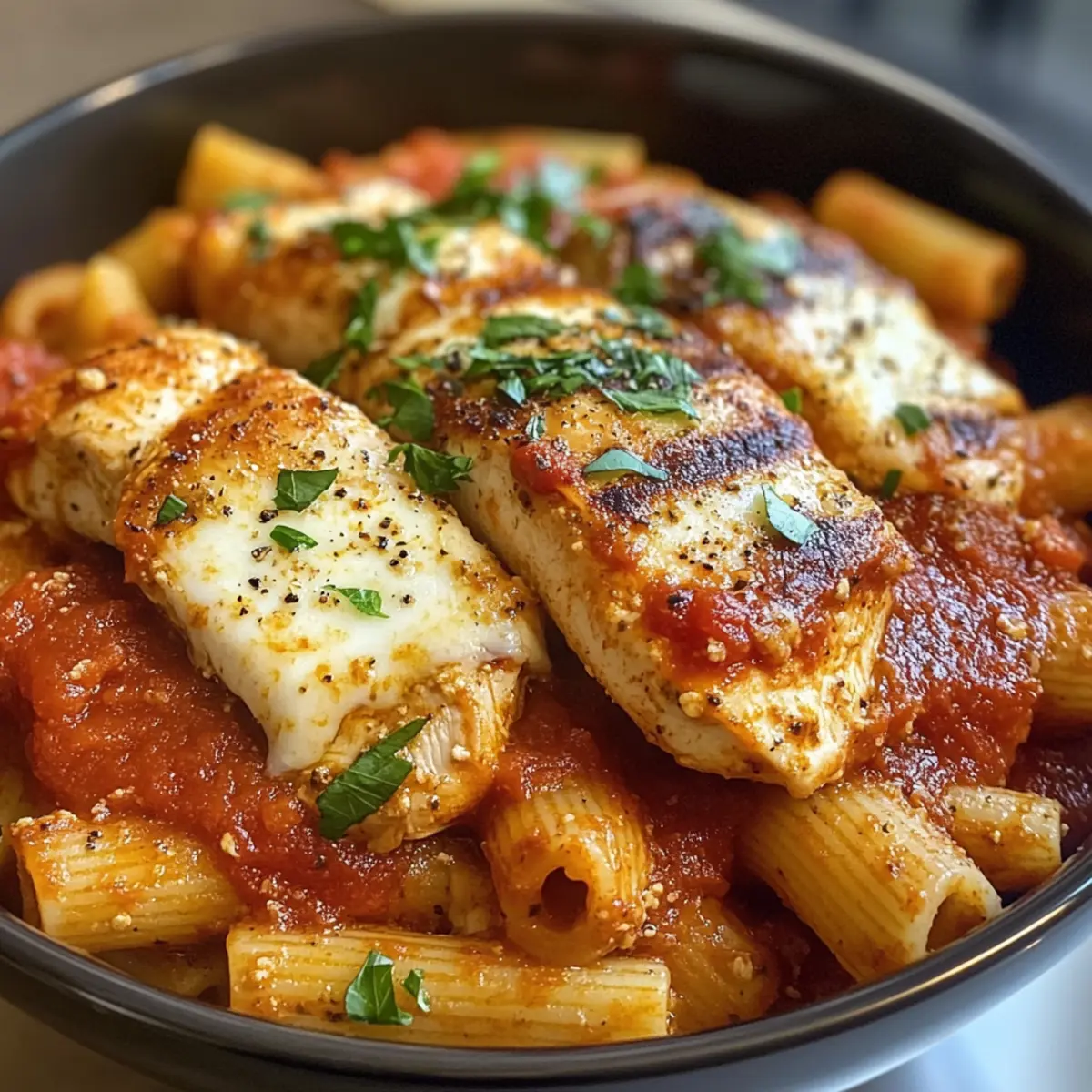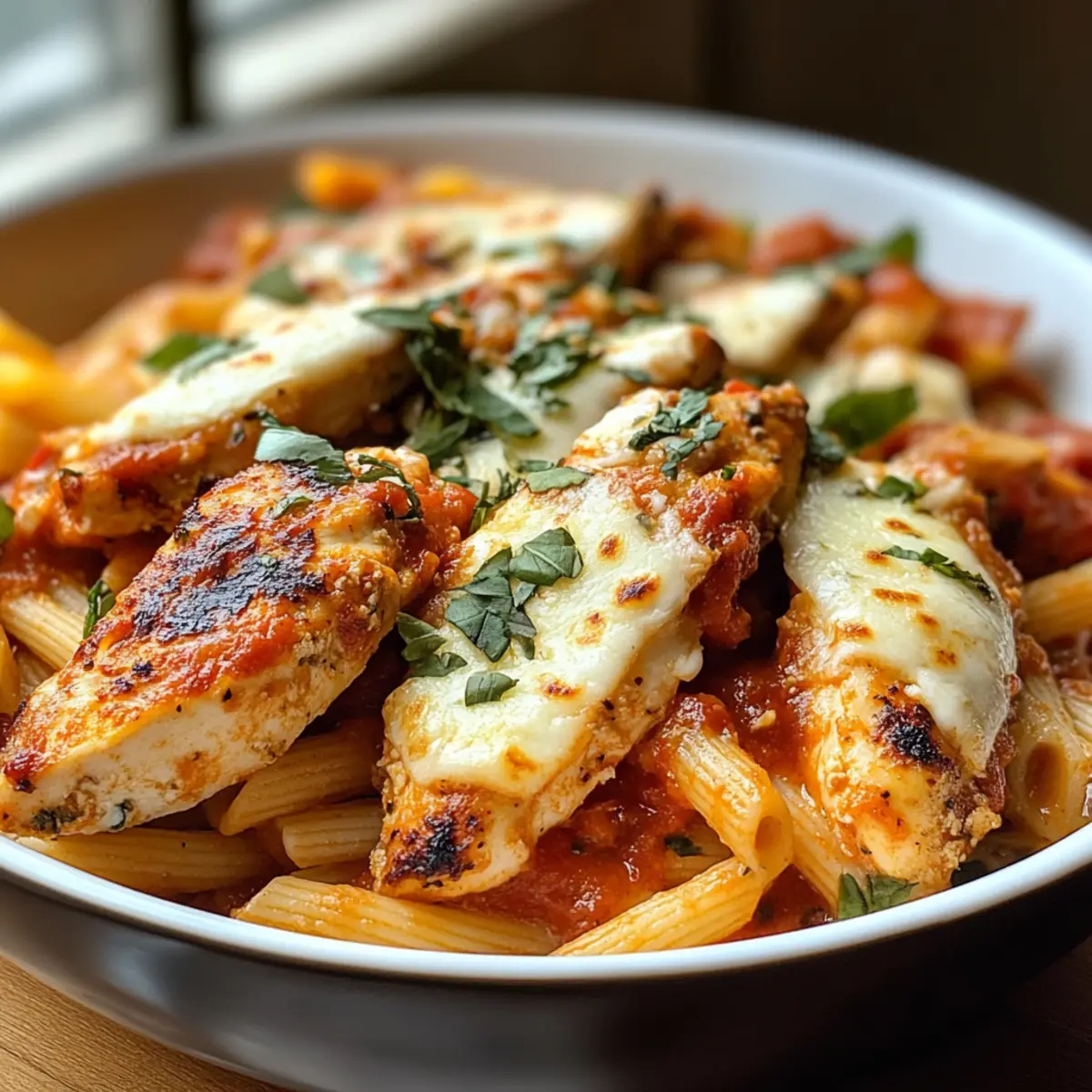 Comfort in a Bowl: Cozy textures unite in this dish, with smooth cheese, tender chicken, and zesty sauce—a heartwarming experience in every bite!