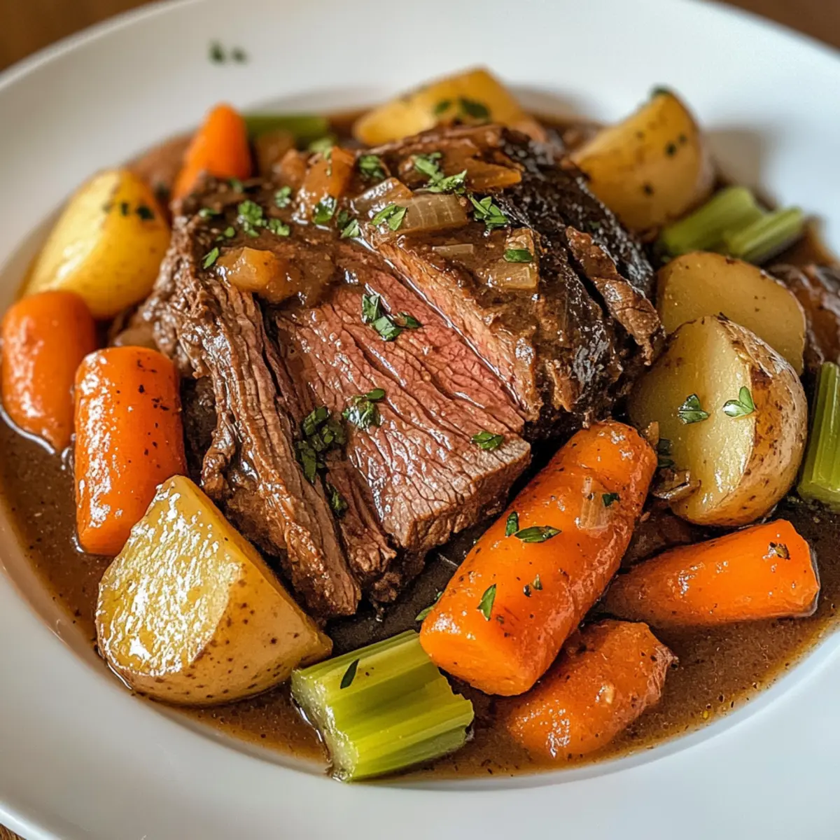 Rich Red Wine: Pair this comforting dish with a bold red wine—like Cabernet Sauvignon—to complement the deep flavors of the pot roast and create a truly special dining experience.