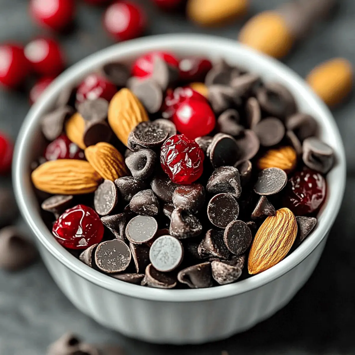 - Dark Chocolate Covered Almonds – Contributes a nutty crunch; consider using other nuts like pistachios for variety.