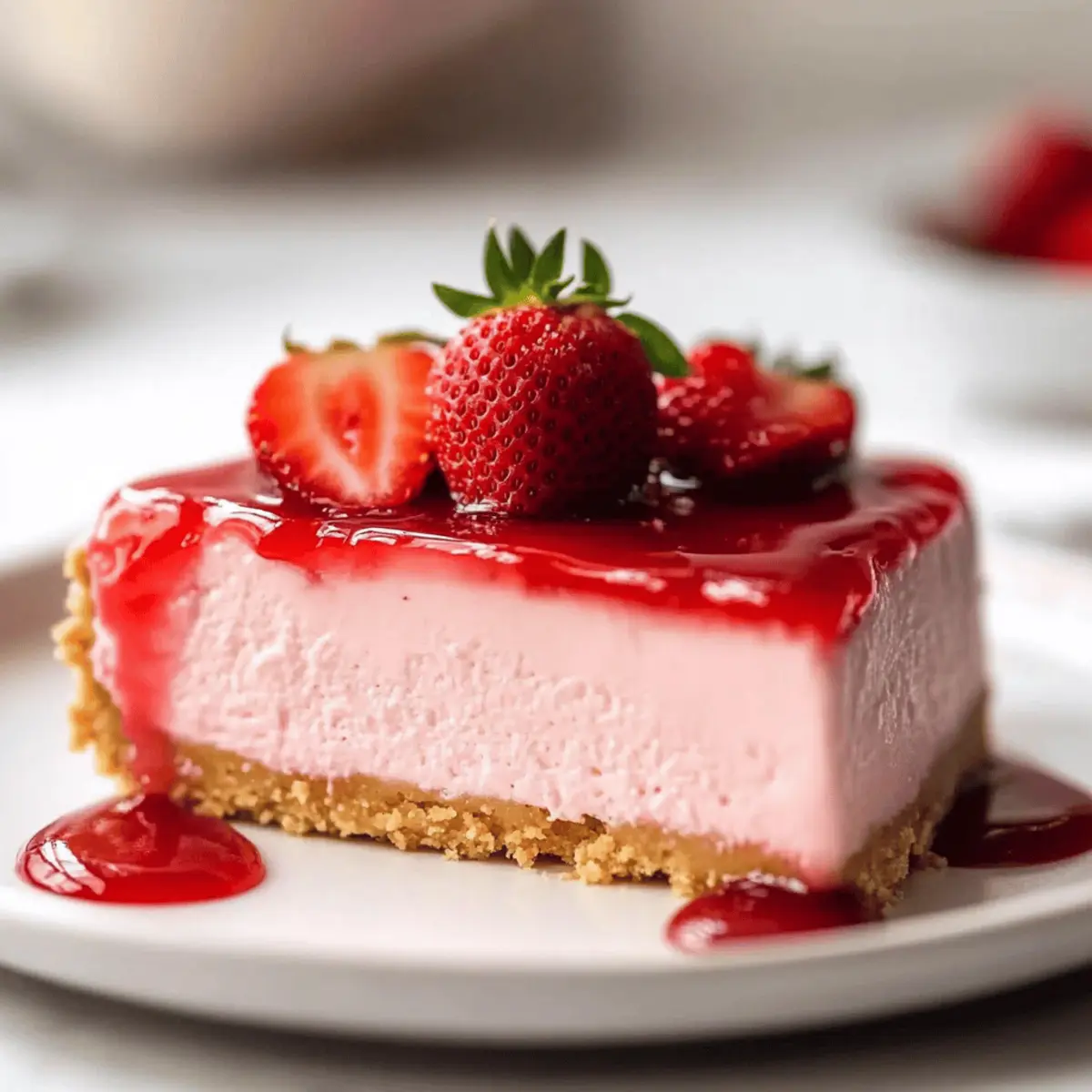 Serving: Garnish with fresh strawberries before serving. If reheating slices, do it gently in the oven to preserve the cheesecake’s creamy texture.