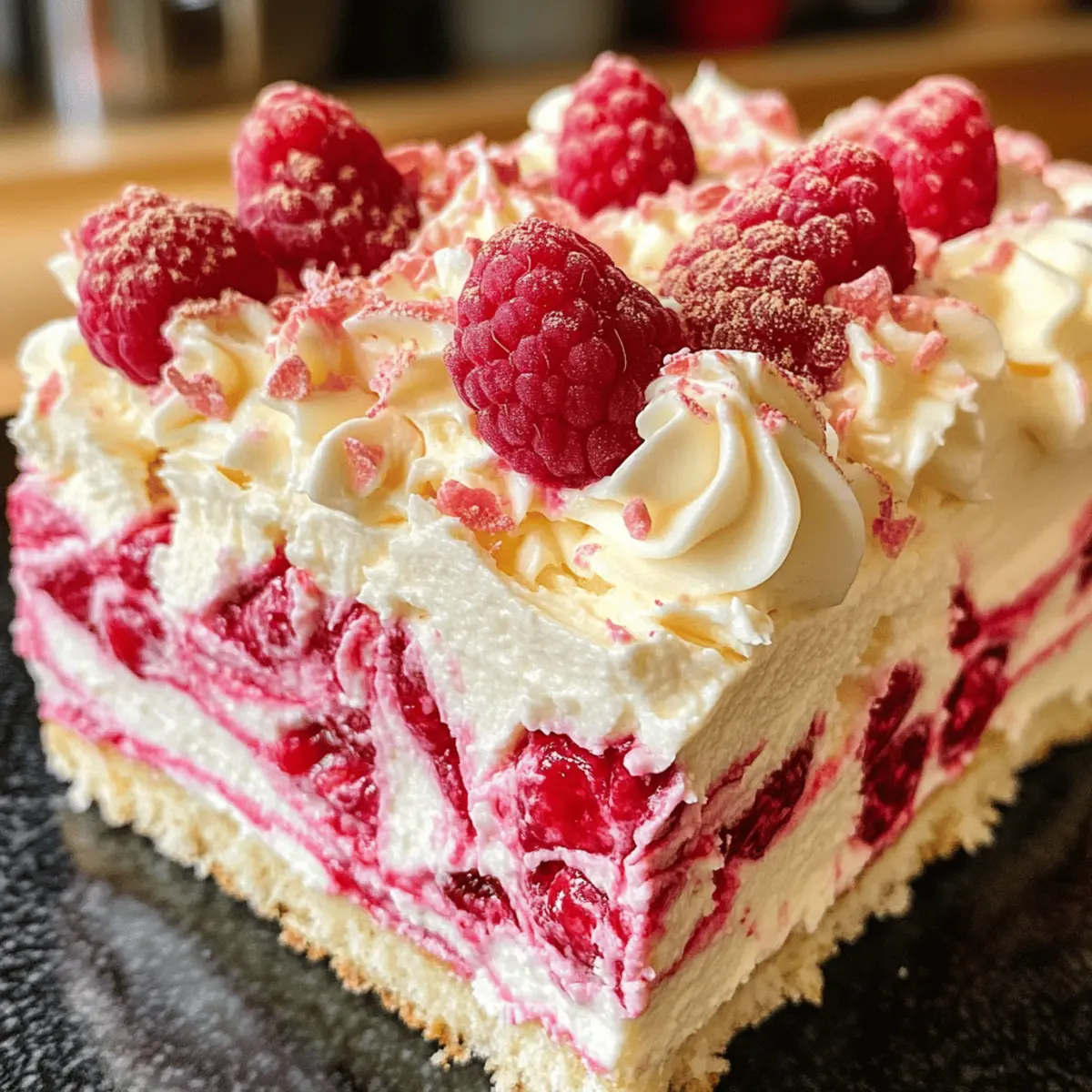 Light Whipped Cream: A dollop of light, sweet whipped cream on the side softens the dessert’s richness while adding textural contrast. It lets the tart raspberry flavor shine even more.